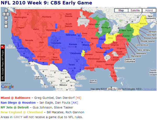 Unless you’re in New England, Cleveland, or Arkansas (for the Peyton Hillis fans there) you’ll need Sunday Ticket to watch this one.