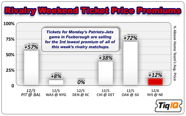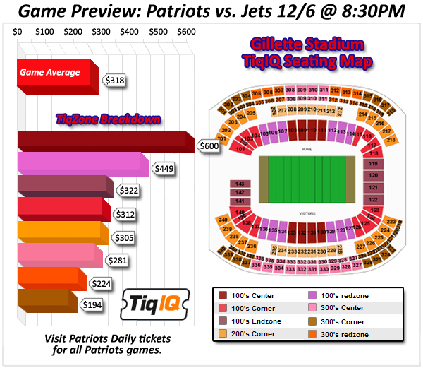 You may have seen the Boston Herald article this morning that reported how ticket prices to Monday Night’s Patriots/Jets clash are soaring.
